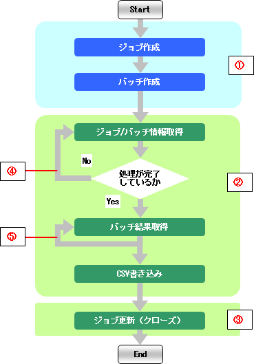 | 処理完了を待ちバッチ結果を取得する |